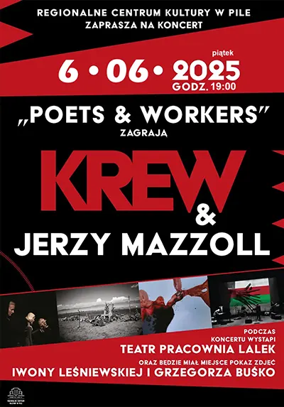 Na koncert w dniu 26 kwietnia 2025 roku: „Poets & Workers” składać się będzie występ zespołu KREW i Jerzego Mazzolla. Artyści wystąpią najpierw wspólnie, a następnie Jerzy Mazzoll solo.